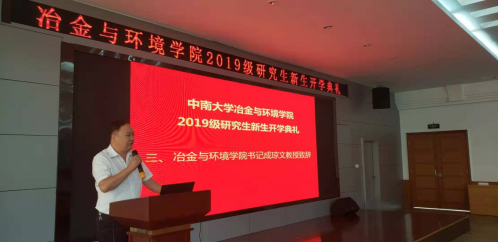 9月3日下午两点半,学院在本部立言厅举行2019级研究生新生开学典礼。学院党委成琼文书记、张凯副书记、王万林副院长、赖延清副院长、陈爱良副院长、杨建广副院长出席开学典礼,各党支部书记、研究所教师代表、研工办全体老师与258名新生欢聚一堂,典礼由闵小波副院长主持。