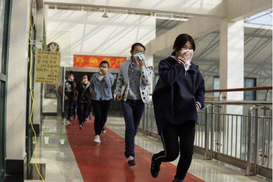 14:15,演习正式开始。热闹而和谐的中南大学升华餐饮楼逐渐被滚滚浓烟笼罩,四周呼叫声起,两名路过的同学发现火情后及时拨打了119火警电话。升华保卫室拉响警报,学校安保人员和物业工作人员迅速到达现场,协助同学们疏散,并对伤势较轻的进行撤离。楼内的同学此时已用湿毛巾捂住口鼻,有秩序地撤离火场,重伤患者也被随后赶来的医护人员安全撤离现场。随后,岳麓区麓山门消防中队的消防车及时抵达二食堂附近进行火情侦查,并架设水枪灭火,火势得到控制。突然,三楼传来了呼救声,室内还有被困人员。消防战士立即展开了救援,被困人员在消防战士的救援下被成功解救,医护人员紧急检查了被困人员伤势。终于,二食堂重新回归宁静,大火在学校和消防部门的通力配合下被完全扑灭了。最后,随着同学们有序的撤离、消防人员的冷静调控,险情结束。