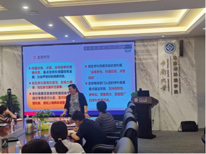为促进创新创业人才培养,增强学院学生创新实践意识,提高学生对学科竞赛知识的了解,鼓励学院学生积极参加科创类比赛,切实提升参赛项目的质量和水平,营造学院浓厚的科创氛围,10月25日下午,学院邀请中南大学国家级双创示范基地主任、创新创业创造与人才发展研究中心主任杨芳老师,在金贵楼208会议室为学院师生开展学科竞赛培训指导。学院党委副书记朱忠平、副院长陈爱良、副院长王亲猛、各所教学所长、部分教师代表、研究生及本科生学生代表参加了本次活动,会议由分管本科生教学的副院长陈爱良主持。