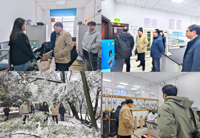 专题工作会后,学院成琼文书记、闵小波院长带队对学院各楼栋实验室进行安全环保检查,并查看强降雪对各楼栋的影响,现场查看积雪清理、房屋和树木防护、楼栋周边环境治理等情况,学院办公室和实验中心负责人及相关老师陪同。