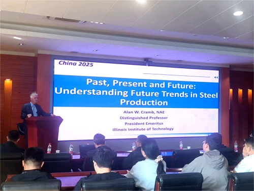 2025年10月28日,美国国家工程院院士、伊利诺伊理工学院原校长Alan W. Cramb教授做客中南大学名师名家学术论坛,在科教南楼一会议室做了题为“Past, Present and Future: Understanding Future Trends in Steel Production”的专题学术报告。王万林教授主持本次论坛交流。