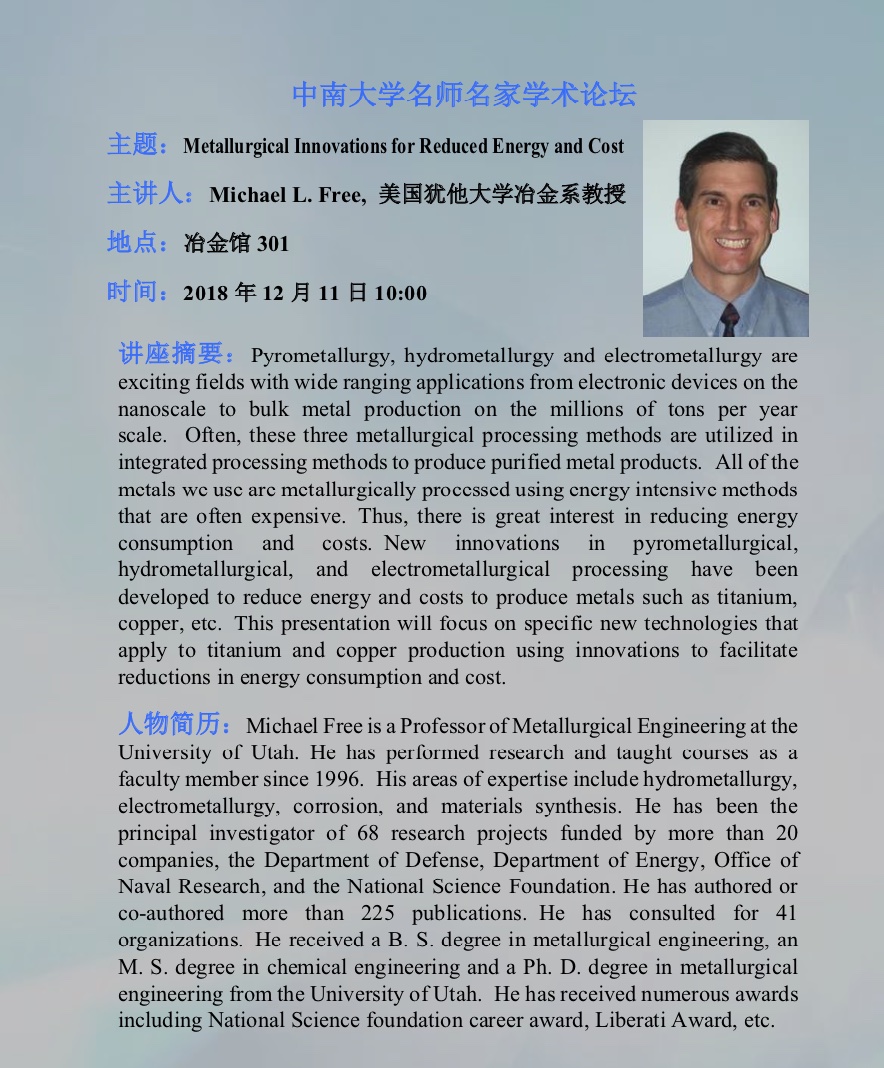 发布时间:2018-12-07    作者:Michael L. Free, 美国犹他大学冶金系教授    来源:冶金馆301     浏览次数: