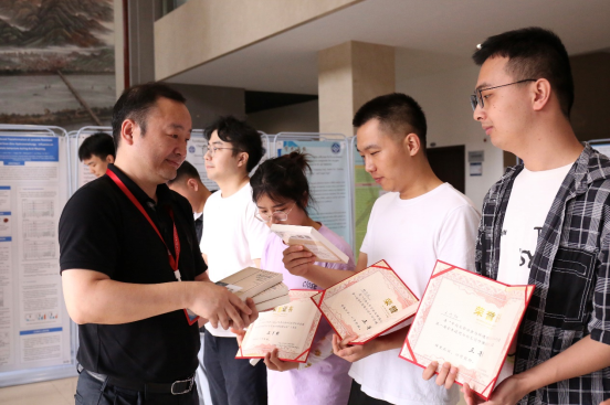 学院约350名师生在活动会场自由观看、交流讨论,人群川流不息,讨论气氛热烈,大家纷纷在感兴趣的海报前驻足观看,或扶额沉思,或提问请教,或分享经验,或拍照留取科研灵感,整个会场弥漫着浓烈的学术氛围。投票通道同步开启。学生们守候在自己的墙报附近,师生们依次观看海报,与海报制作者进行热烈地交流。展会从290名参展者中评选出一等奖4名、二等奖8名和三等奖12名,并颁发荣誉证书和奖品。
