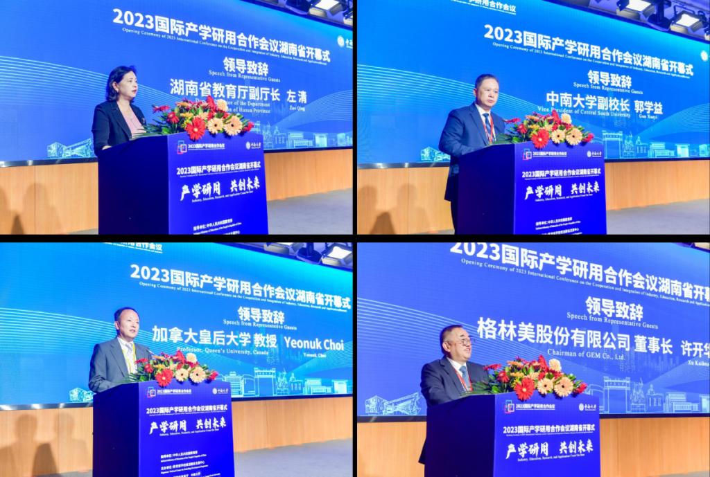 湖南省教育厅副厅长左清、中南大学副校长郭学益、加拿大皇后大学Yeonuk Choi教授和格林美股份有限公司董事长许开华教授出席开幕式并致辞。左清指出,承办国际产学研用合作会议是湖南省加大教育开放合作的重要机遇和促进产学研深度融合的创新举措,希望各高校、科研院所和企业坚持教育、科技、人才一体推进,加快湖南省丰富科教资源转化为科技创新优势的脚步,为湖南省的经济社会高质量发展注入强劲动力。郭学益表示,中南大学坚持开放办学,国际合作与交流活跃,在冶金领域深耕细作、成果显著,希望通过产学研用深度合作,积极探索新时代国际产学研用合作新模式,推动全球低碳冶金可持续发展。Yeonuk Choi表示,要促进大学与企业合作取得成功,最重要的是长期的努力和付出。许开华认为,无论世界怎么变化,世界的底色是绿色这一点不会变,人类开发资源的步伐不会变,世界的合作不会变;并表示冶⾦学科要为世界绿⾊服务、为世界新能源服务、为世界科技交流服务。