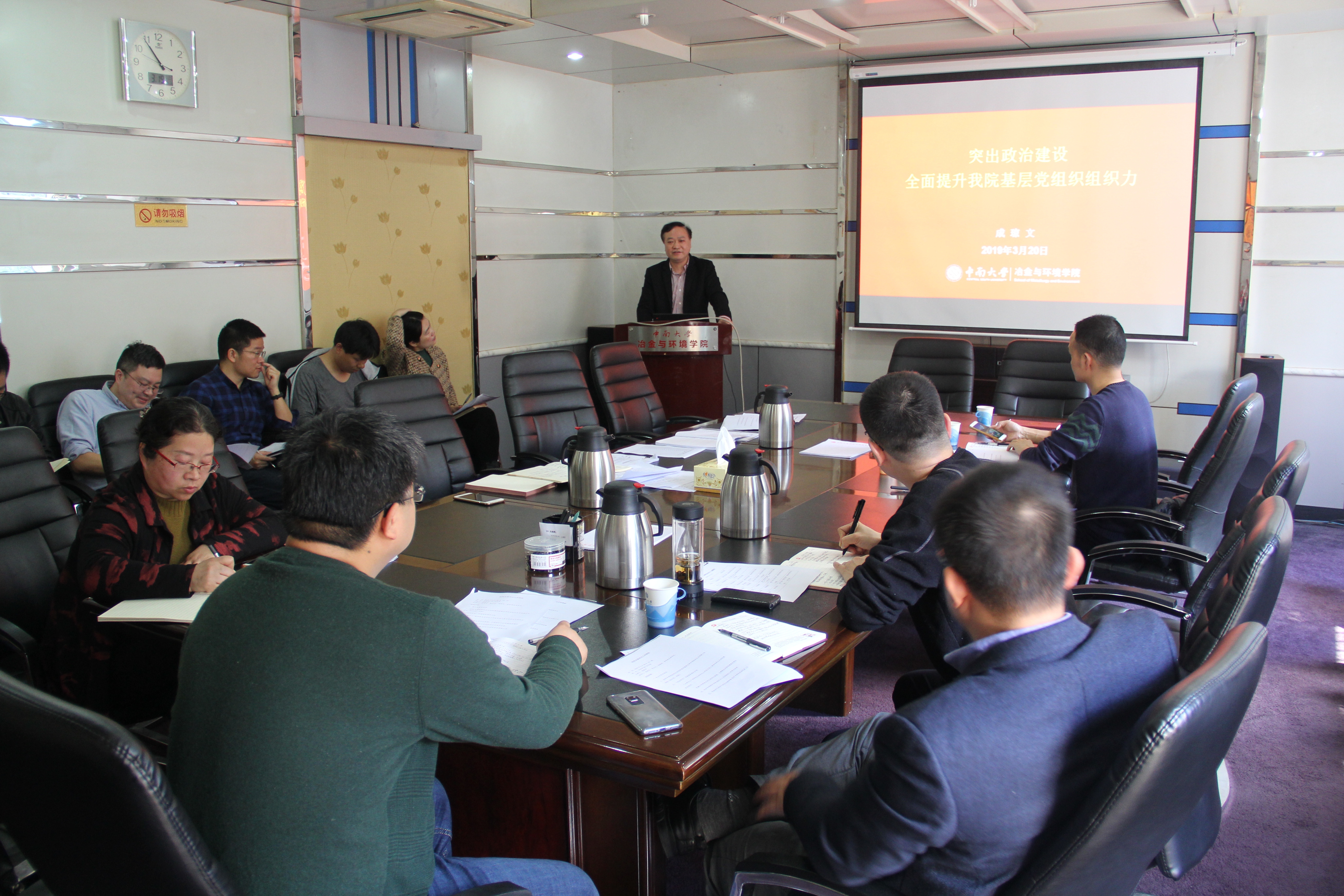 首先,柴立元院长对支部建设重要意义及如何抓好党建促进“双一流”学科发展提出要求,要提高政治站位,落实好立德树人根本任务,创新工作方法,把支部工作与学科建设相结合,充分发挥党员先锋模范作用