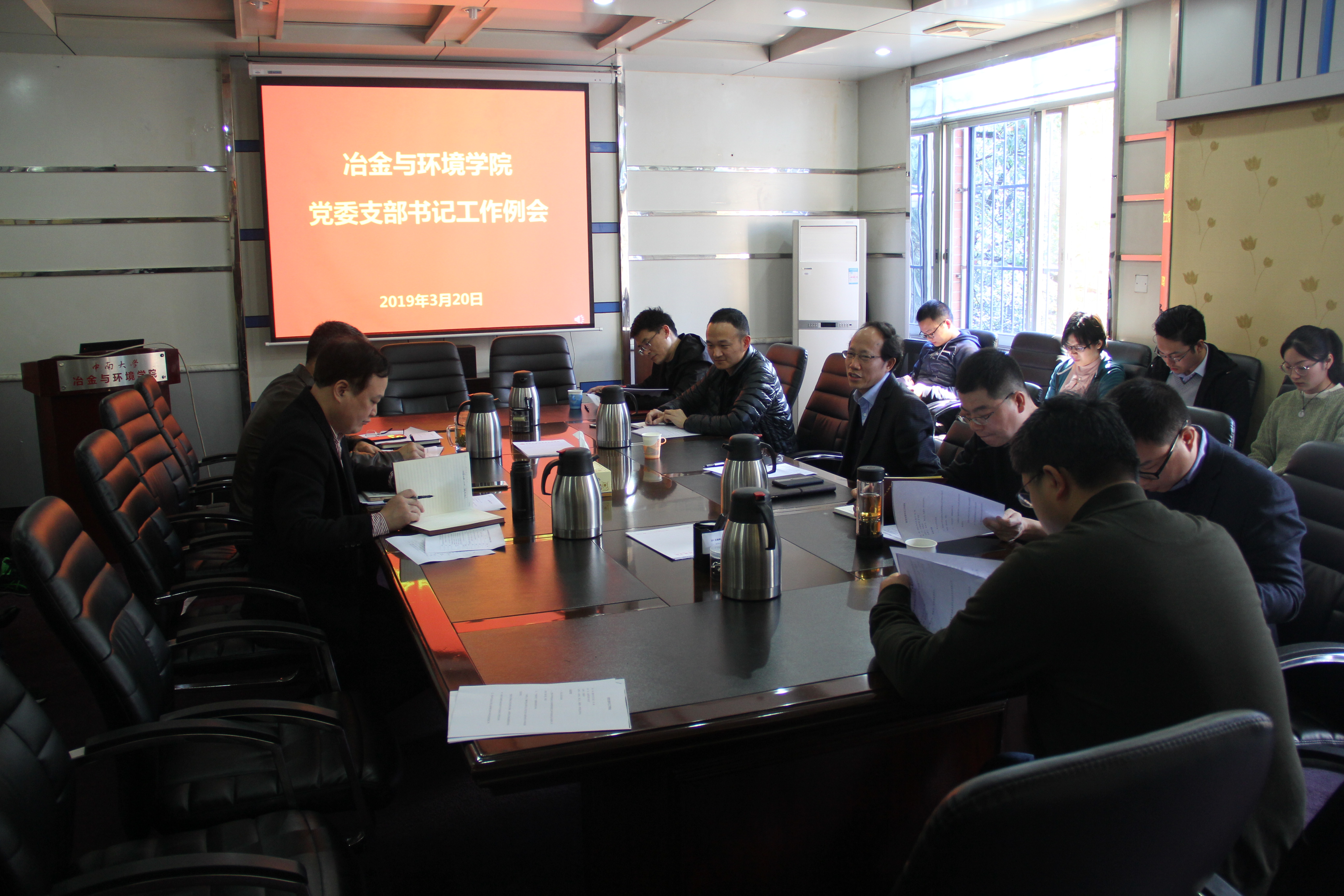 3月20日上午,学院党委在冶金馆201会议室召开党支部书记工作例会。学院党委书记成琼文、院长柴立元及各党支部书记参加会议。会议由组织员侯晓华主持。