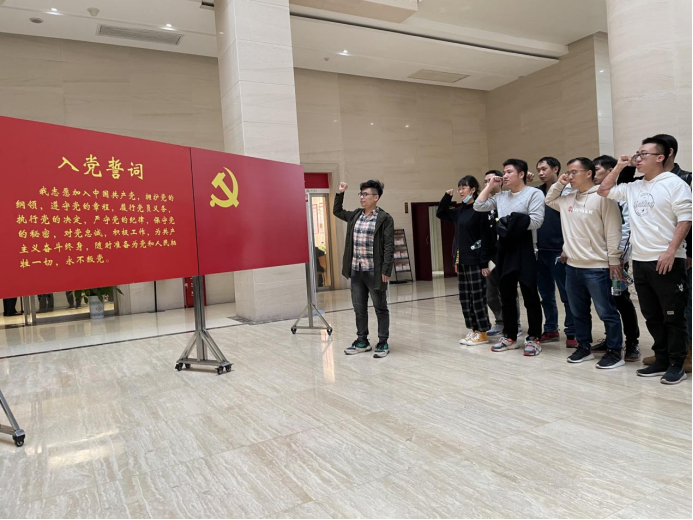 进入陈列馆内,面对鲜红的党旗,全体党员高举右手庄严宣誓,重温对党忠诚的誓言,砥砺初心、牢记使命,坚定理想信念,增强宗旨意识,不忘本真、面向未来、永葆本色。领誓人为工口漫画 马亚赟博士。