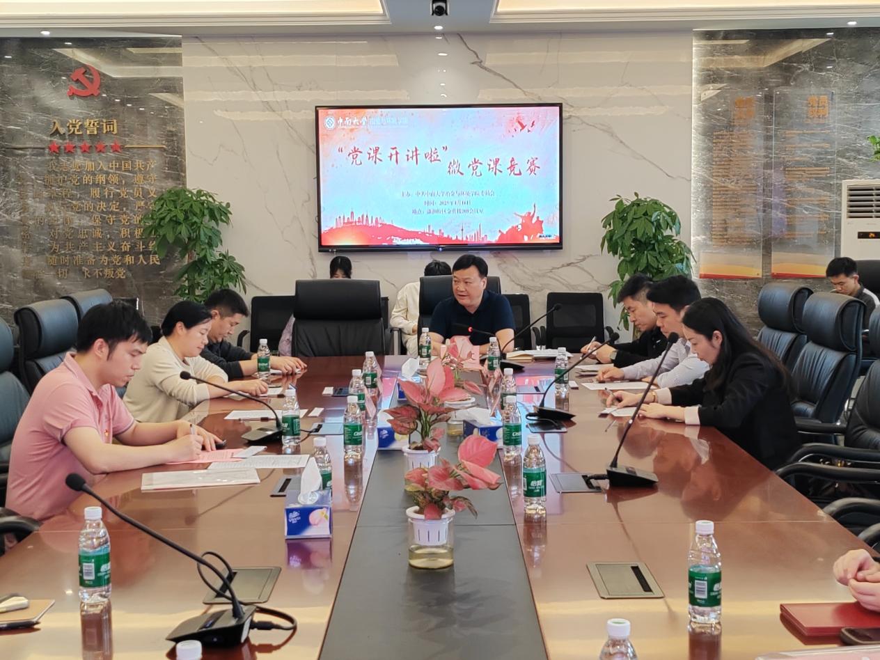 “党课开讲啦”微党课竞赛在金贵楼208会议室成功举行。学院党委书记成琼文出席并致辞,来自各党支部的24名师生党员登台讲课。