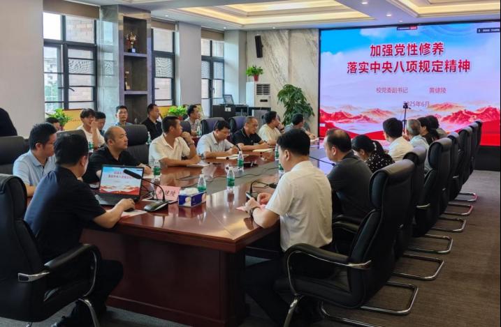 6月18日下午,校党委副书记黄健陵在金贵楼208会议室以《加强党性修养,落实中央八项规定精神》为题讲授专题党课,学校党委组织部全体成员、离退休工作处班子成员、工口漫画 全体班子成员与党支部书记、交通院师生代表等50余人线上线下参加学习。