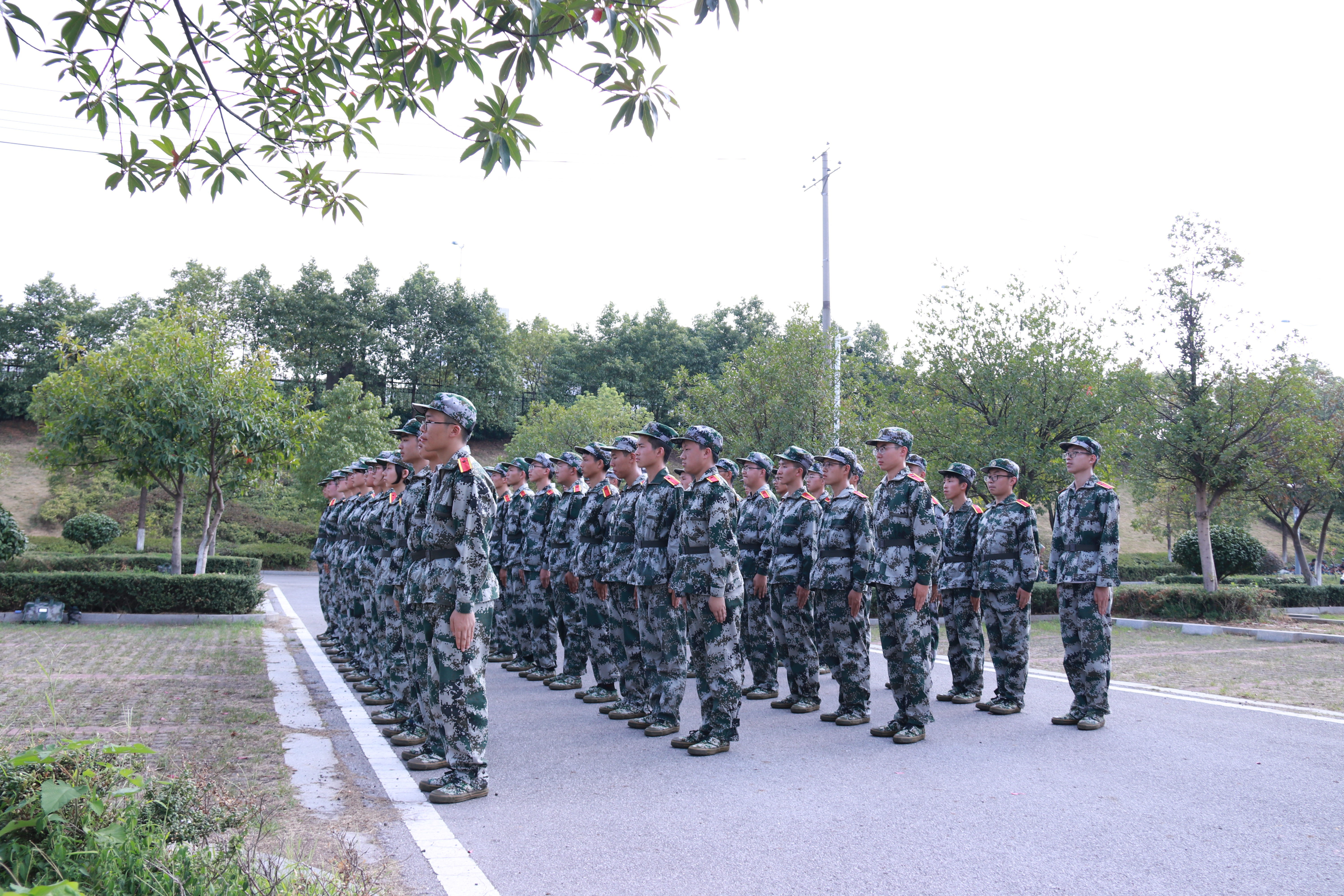 烈日炎炎之下,数不尽的披着迷彩绿的身影或息或止,或奔或行;笑声揉杂在汗水里,亲吻着这一份二十一天的青春。