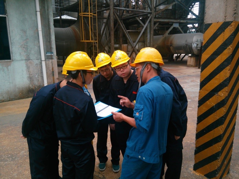 截止到目前发稿为止,实习队在工厂相关负责人及两位带队老师的带领陪同下,已经依次参观了硫酸生产车间和备料车间。工厂相关负责人热情的向实习队介绍了硫酸车间烟尘处理过程、硫酸的制备过程、废酸废水处理过程以及备料车间的备料过程,并对参观过程中队员产生的疑问进行了解答。
